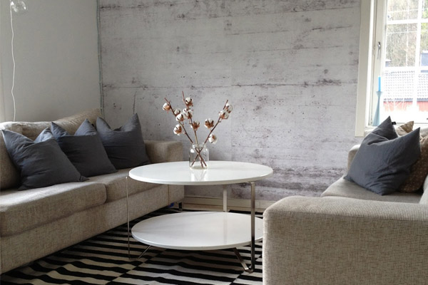 Betónová stierka na stenu je veľmi obľúbená povrchová úprava stien v interiéri.